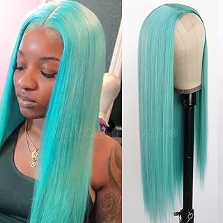 Maycaur Blue Green Color Synthetic Hair Wigs with Natural Hairline Long Straight Women's Wig Heat Resistant Synthetic No Lace Wigs for Fashion Women