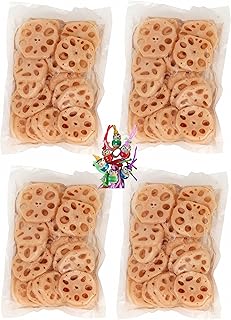 [ 4x 500g / 300g ATG ] Lotuswurzel, geschnitten in Wasser / Sliced Lotus Root in Water + ein kleines Glückspüppchen - Holzpüppchen