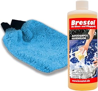 Brestol Autoshampoo Handwäsche SET1 1000 ml Konzentrat + Waschhandschuh - Autowäsche Abperleffekt Abperl-Effekt geeignet für Foam Master Schaumsprüher Schaumsprühgerät oder manuelle Fahrzeugwäsche