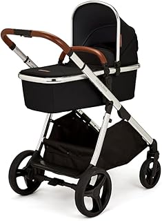 Ickle Bubba Eclipse 3-in-1-Reisesystem, mit Galaxy-Autositz, Isofix-Basis und integriertem 'Bubba-Board' (Schwarz mit hellbraunen Griffen)