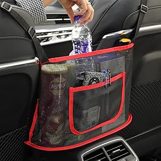 Auto Netztasche Handtaschen-Halter, Auto Mesh Organizer zwischen den Sitzen für Geldbörse, Handy, Dokumente, Haustiere, Kinder, Absperrung, Stopper, rot