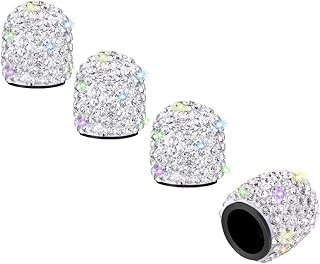Alohha Ventilkappen, 4 Stück, handgefertigt, Kristall, Strasssteine, Universal Reifenventil-Staubkappen Bling Autozubehör für Auto Start Motor Zündknopf Schlüssel und Knöpfe (weiß)