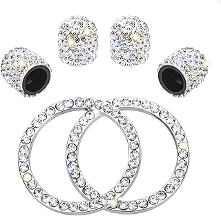 SAVITA 4 x Diamant Ventilkappen Universal Auto Staubkappen Autozubehör mit 2 Diamant Auto Zündknopf Ring Push Start Aufkleber Ringe