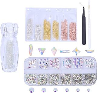 SUQ Kristall Strass Set, Multi Formen Glas Kristall AB Strasssteine, Nagel Kristalle Strasssteine Flache Rückseite Gemischt Diamant Stein mit Pickup Pinzette und Strass Picker Dotting Pen