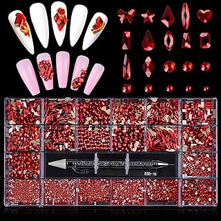 3100Pcs Strasssteine Set, EBANKU Rote Nail Art Kristall Strass Multi Formen Glas Kristall AB Strasssteine mit Strass Picker Dotting Pen und Pick Up Pinzette für Frauen Funkelnde Nagelkunstdekoration